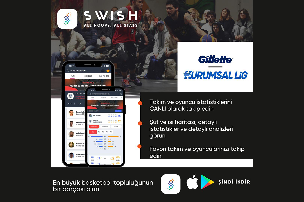 Gillette Kurumsal Basketbol Lig İlkbahar 2026 sezonu maçlarının canlı istatistikleri, fikstür ve puan durumu, istatistik liderlerleri gibi birçok detayı “SWISH” uygulaması üzerinden takip edebilirsiniz.