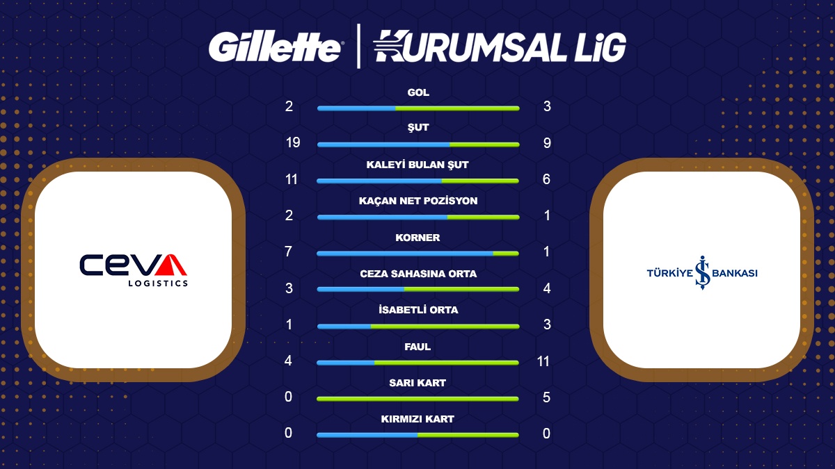 Gillette Kurumsal Futbol Lig Sonbahar Sezonu final maçında CEVA Logistics ile Türkiye İş Bankası takımları karşı karşıya geldi. Türkiye İş Bankası 3-2'lik sonuçla güçlü rakibini yenerek kupaya uzanan taraf oldu.