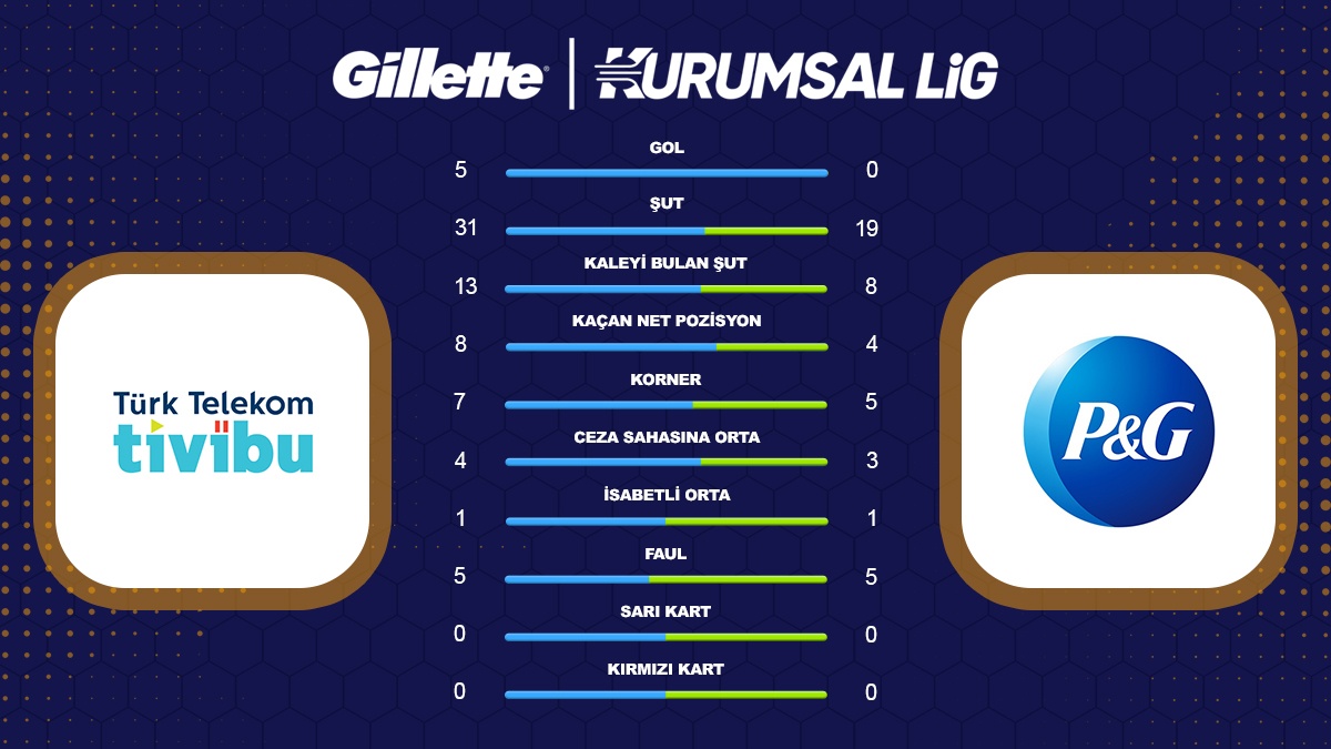 Gillette Kurumsal Futbol Lig 2026 İlkbahar sezonu C grubu 3. hafta maçında Tivibu ile Procter & Gamble takımları karşı karşıya geldi. 5-0’lık skorla kazanan Tivibu 3 puanı alan taraf oldu.